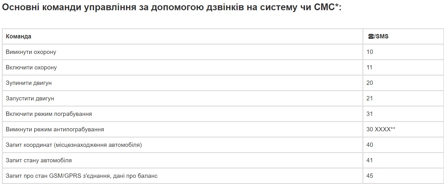 поточний стан вашого авто, треба відправити СМС-повідомлення на номер телефону